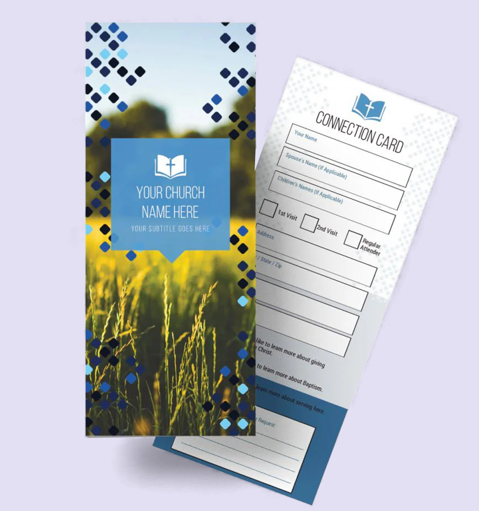 While many churches have chosen to go digital with almost all of their connection points, many have discovered the timeless, personal value of physical church visitor cards. LifePress is happy to offer a number of beautifully designed connection cards that can be easily customized to fit the needs of your church.